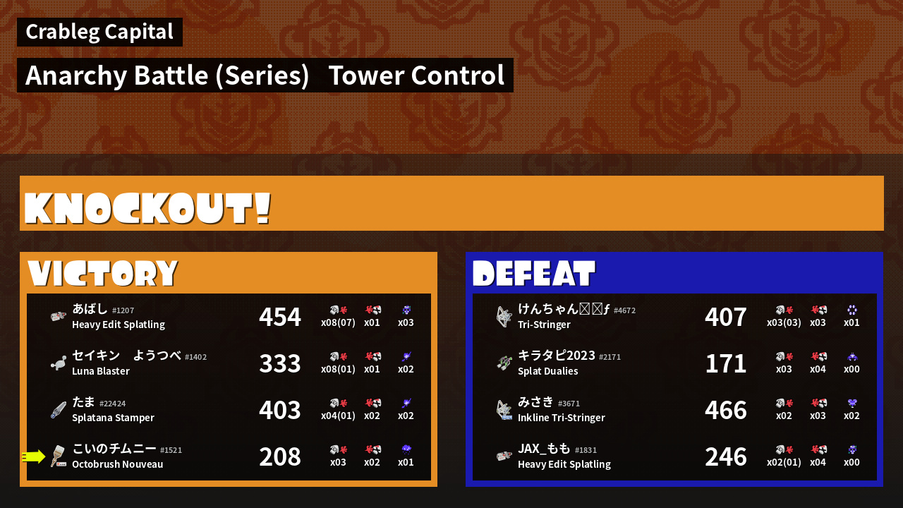 Results of こいのチムニー's Battle