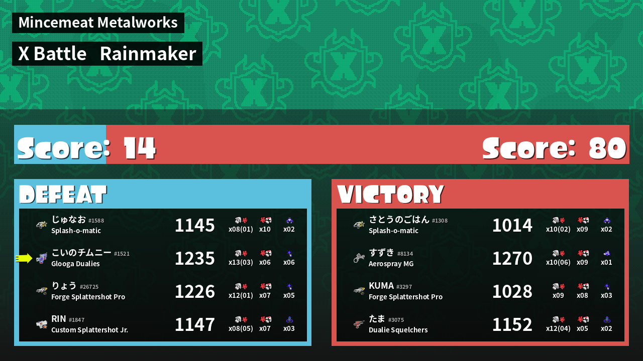 | Medals | #1 Overall Splatter #1 Turf Inker #1 Rainmaker Stopper | ||