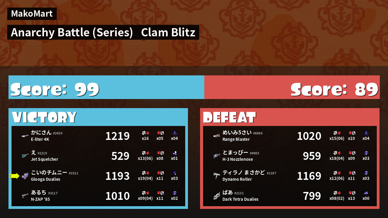 | Mode | Clam Blitz - Anarchy Battle (Series) | ||