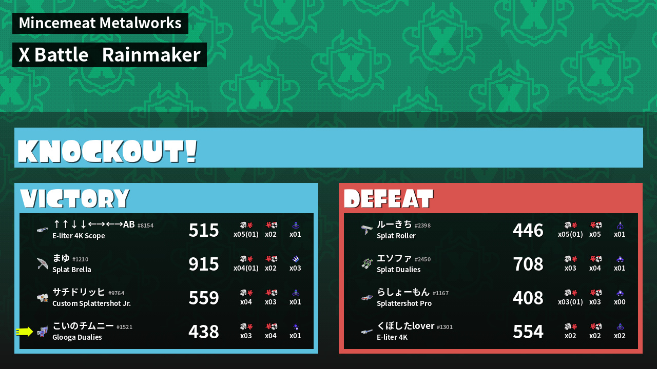| Weapon | Glooga Dualies ( Splash Wall / Booyah Bomb) | ||