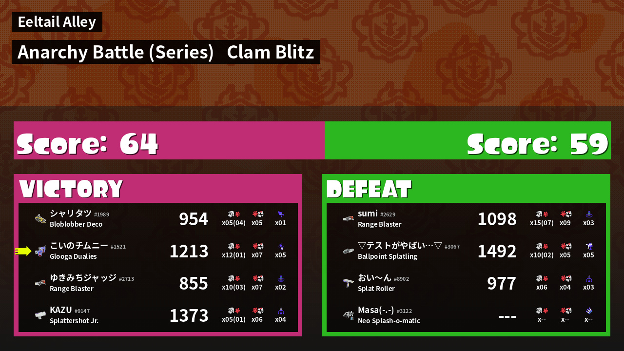 Results of こいのチムニー's Battle