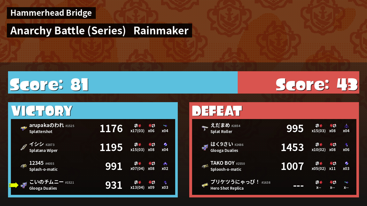 Kills / Deaths | 9 + 4 / 9 = Kill Ratio: 1.00 | ||