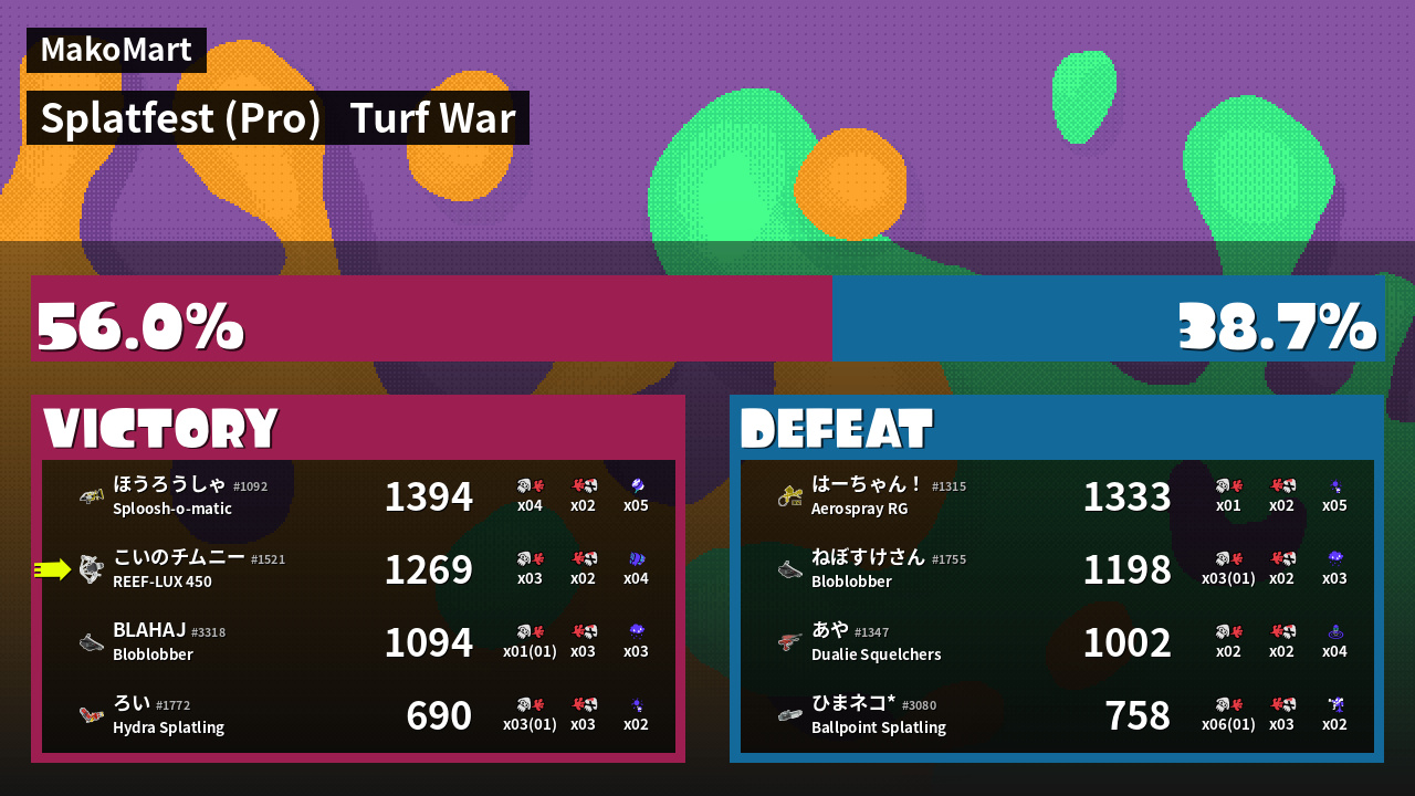 Results of こいのチムニー's Battle