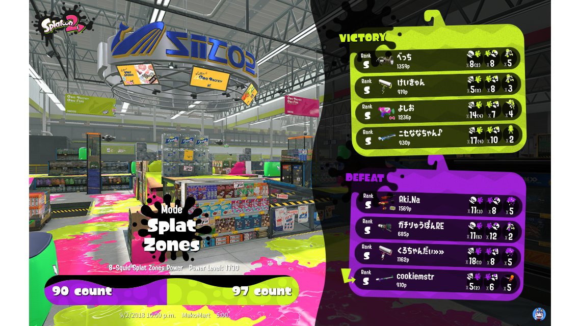 | Mode | Splat Zones - Ranked Battle | ||||||||||||||||||||||||||||||||||||||||