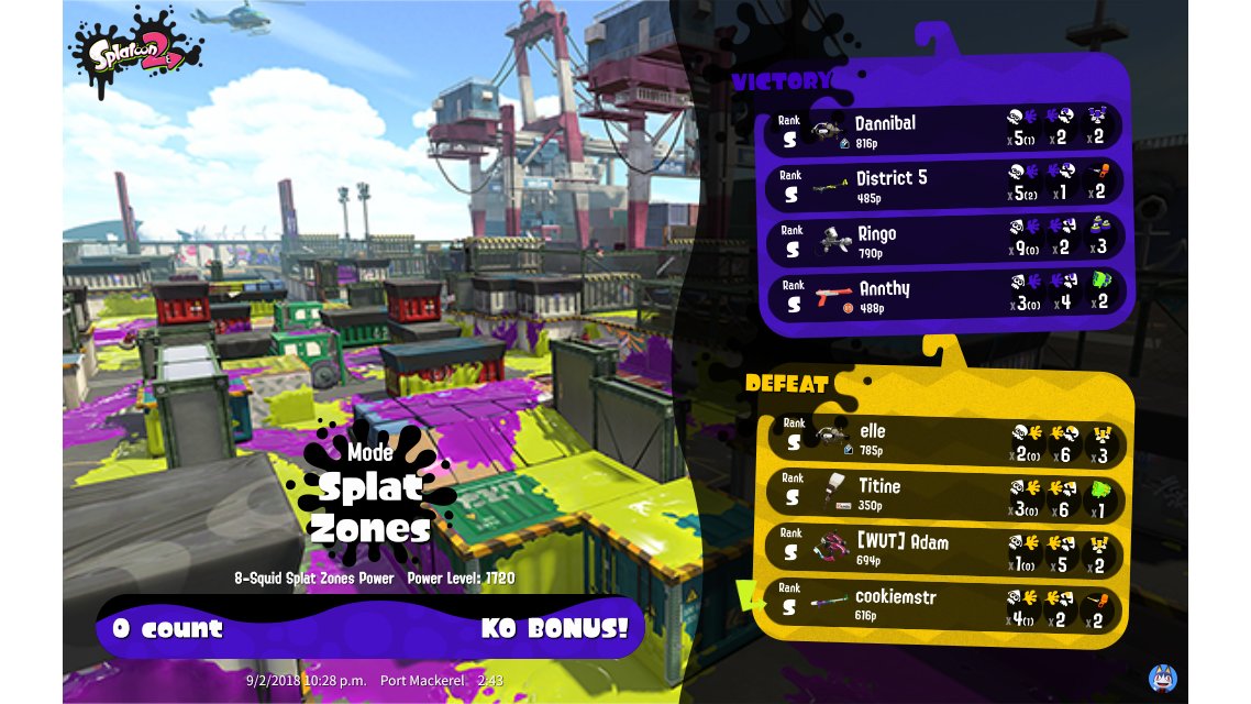 | Mode | Splat Zones - Ranked Battle | ||||||||||||||||||||||||||||||||||||||||