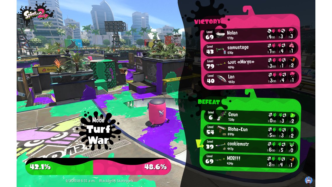 | Mode | Turf War - Regular Battle | |||||||||||||||||||||||||||||||
