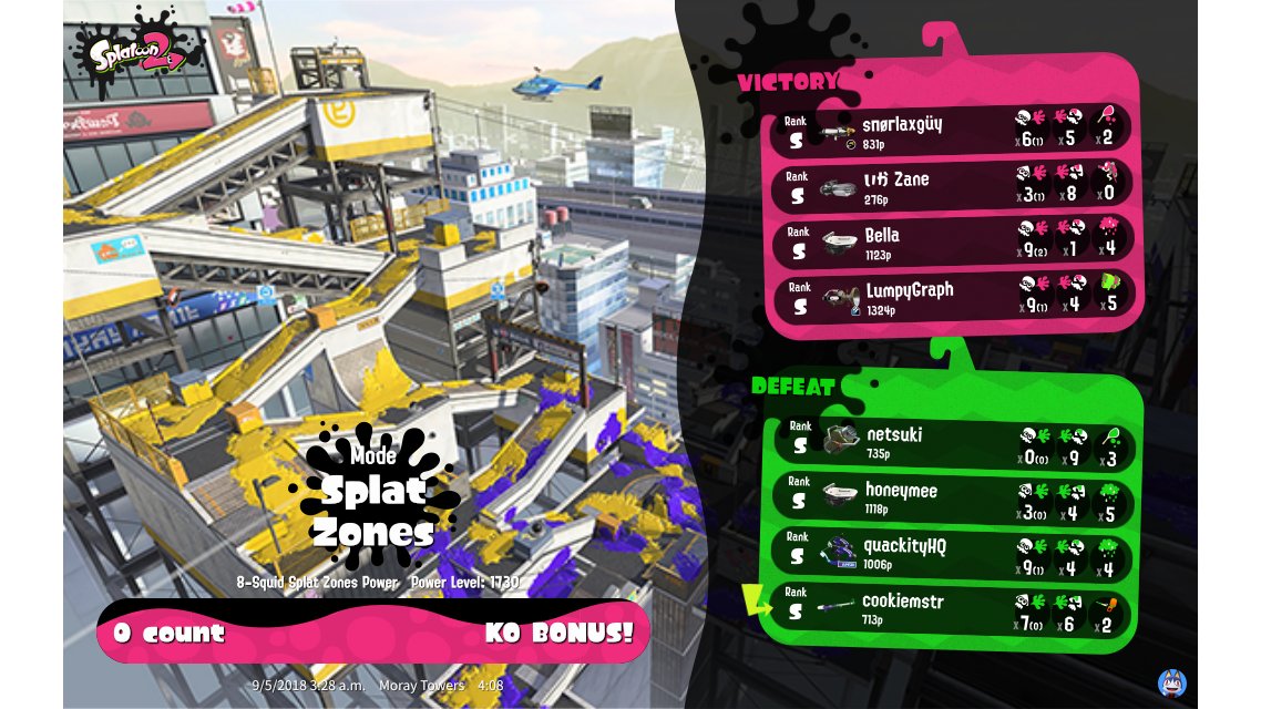 | Mode | Splat Zones - Ranked Battle | ||||||||||||||||||||||||||||||||||||||||