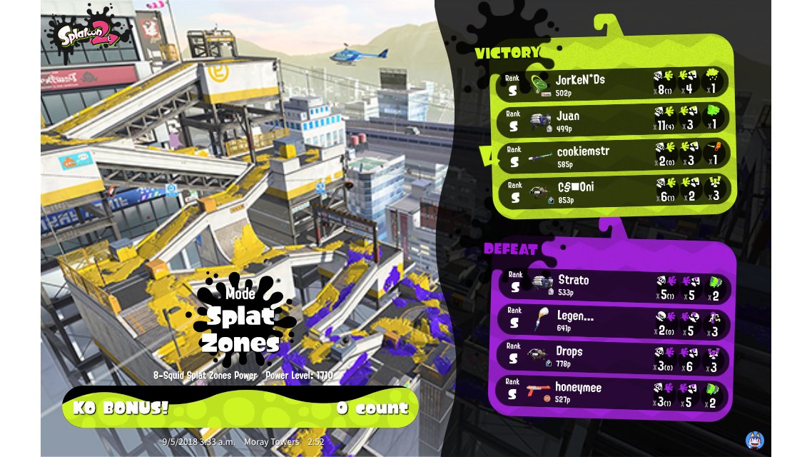 | Mode | Splat Zones - Ranked Battle | ||||||||||||||||||||||||||||||||||||||||