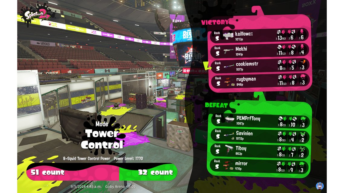 | Mode | Tower Control - Ranked Battle | ||||||||||||||||||||||||||||||||||||||||