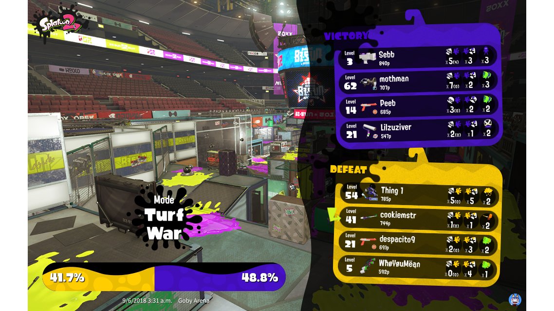 | Mode | Turf War - Regular Battle | ||||||||||||||||||||||||||||||||||||||||