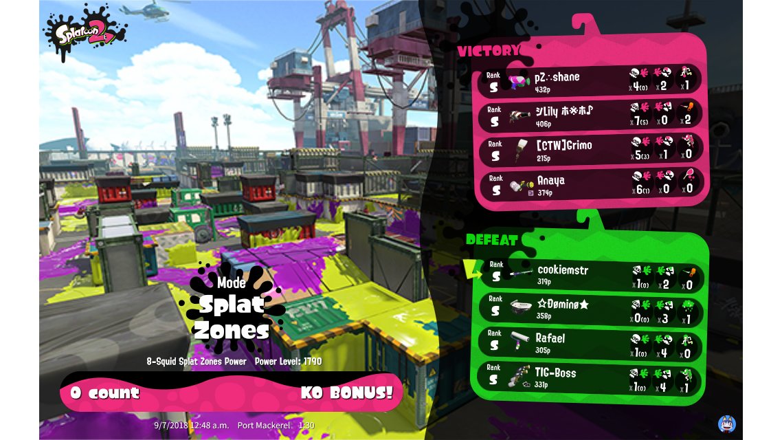 | Mode | Splat Zones - Ranked Battle | |||||||||||||||||||||||||||||||||||||||||||