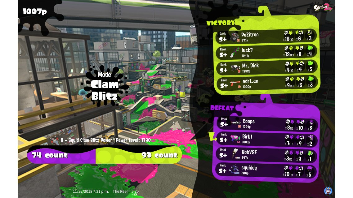 | Mode | Clam Blitz - Ranked Battle | ||||||||||||||||||||||||||||||||||||||||