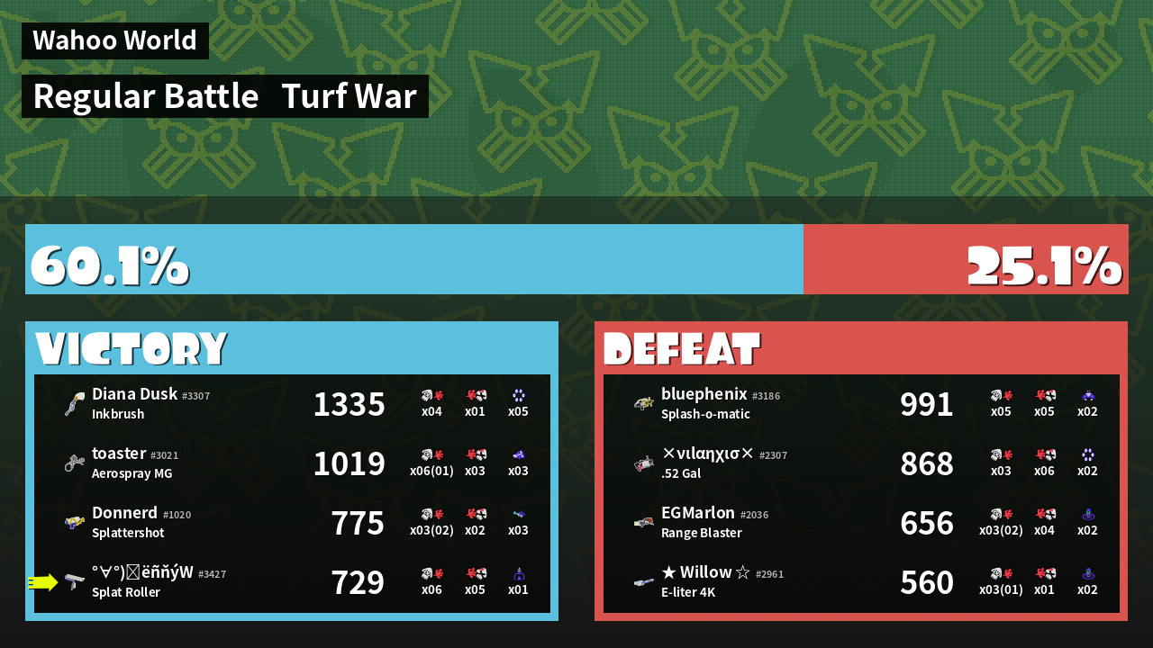Kills / Deaths | 6 + 0 / 5 > Kill Ratio: 1.20 | ||