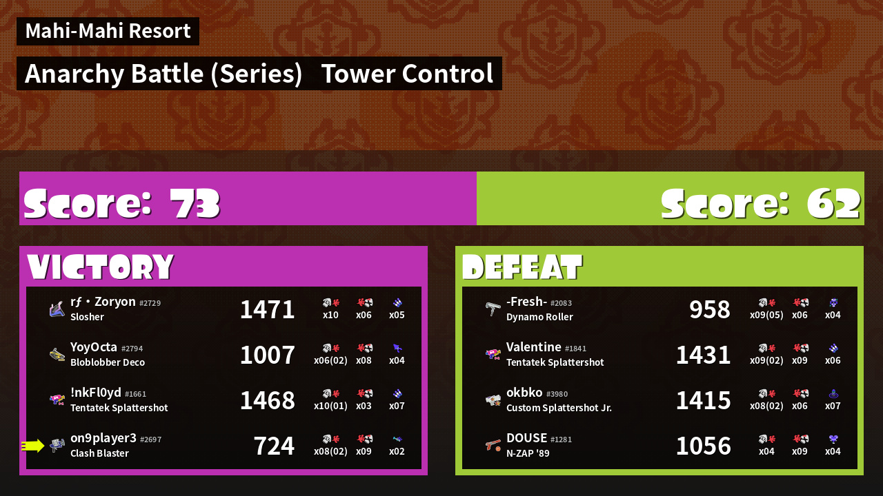 | Medals | #1 Splat Assister #1 Checkpoint Breaker #1 Damage Taker | ||