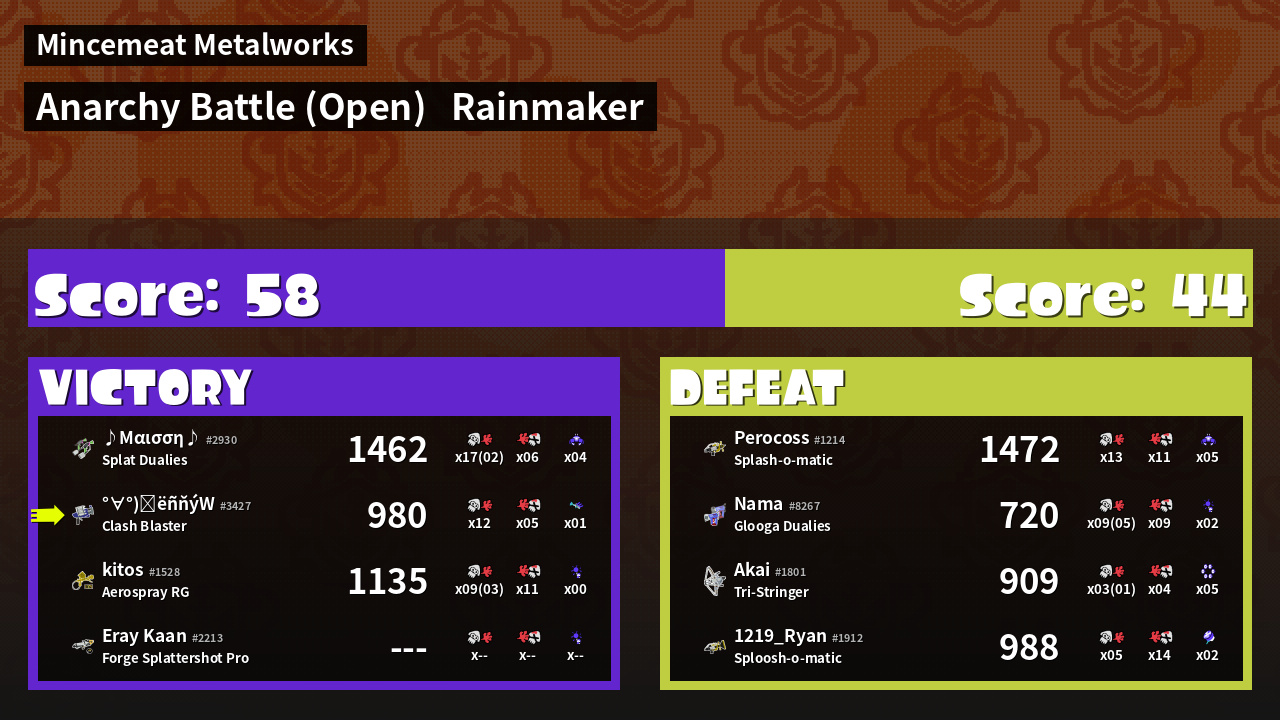 | Mode | Rainmaker - Anarchy Battle (Open) | ||