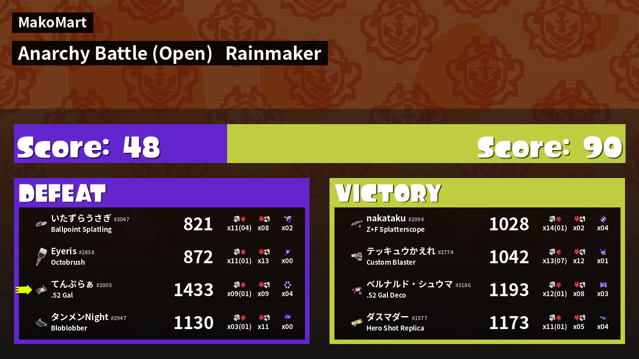 | Mode | Rainmaker - Anarchy Battle (Open) | ||