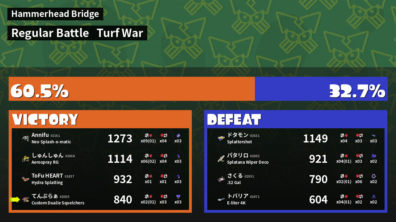 | Medals | #1 Ink Consumer #1 Super Chump User #2 Splat Assister | ||