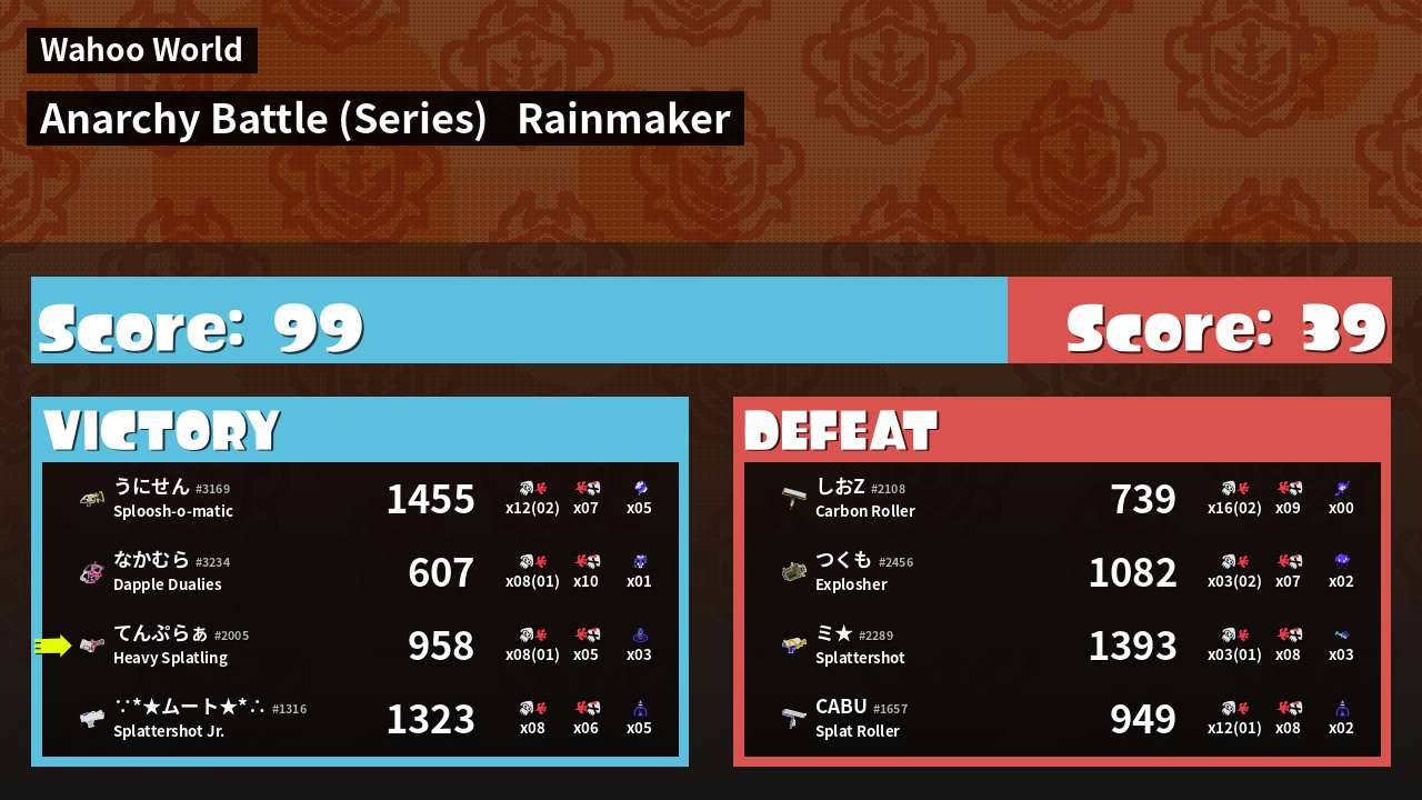 | Weapon | Heavy Splatling ( Sprinkler / Wave Breaker) | ||