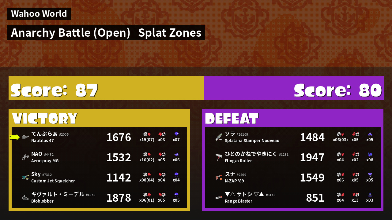 | Mode | Splat Zones - Anarchy Battle (Open) | ||