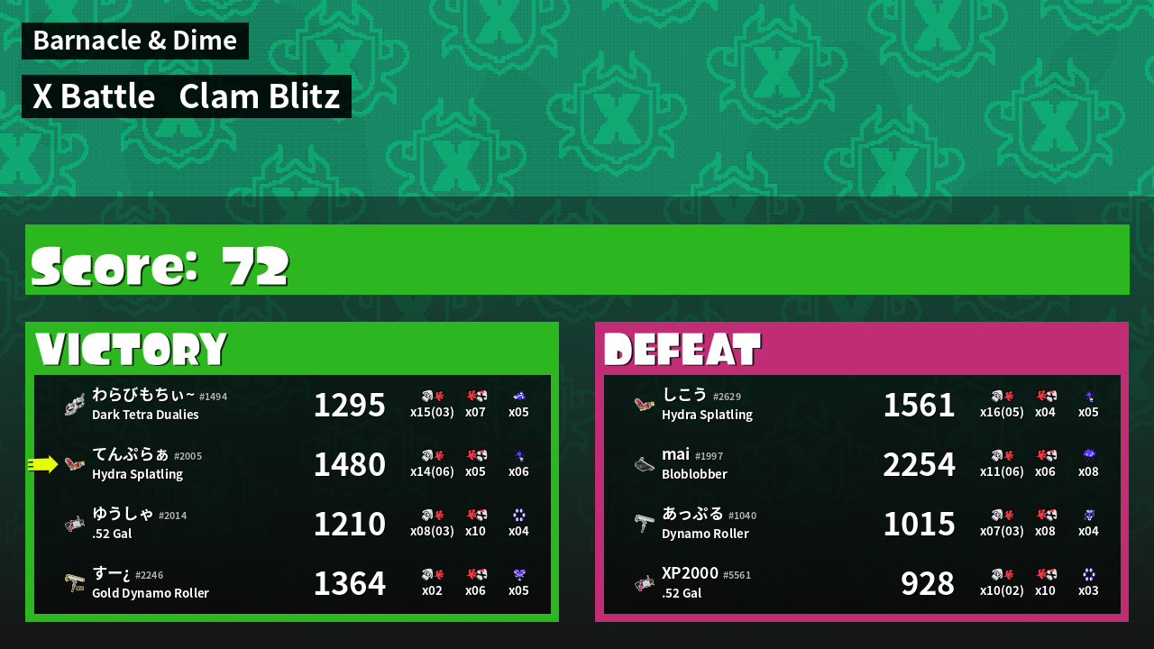 | Mode | Clam Blitz - X Battle | ||