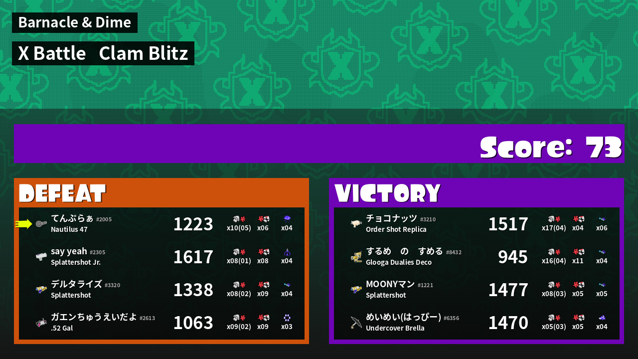 | Weapon | Nautilus 47 ( Point Sensor / Ink Storm) | ||