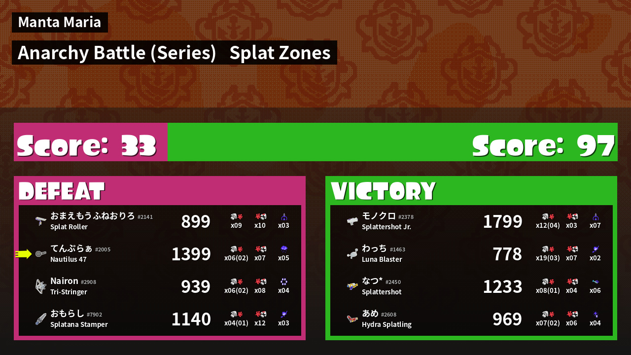 | Mode | Splat Zones - Anarchy Battle (Series) | ||