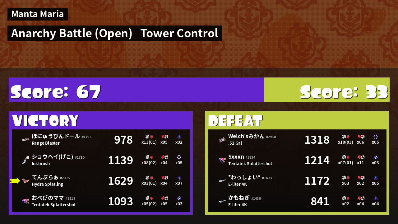 | Mode | Tower Control - Anarchy Battle (Open) | ||