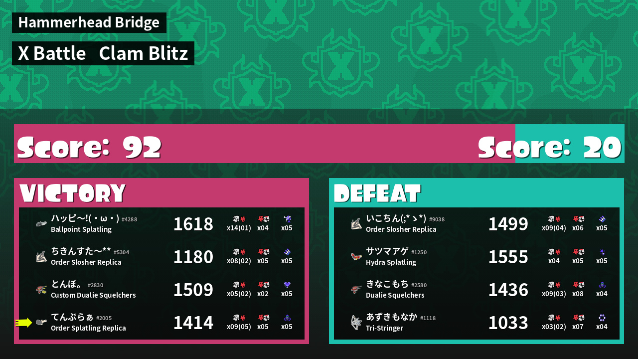 | Mode | Clam Blitz - X Battle | ||