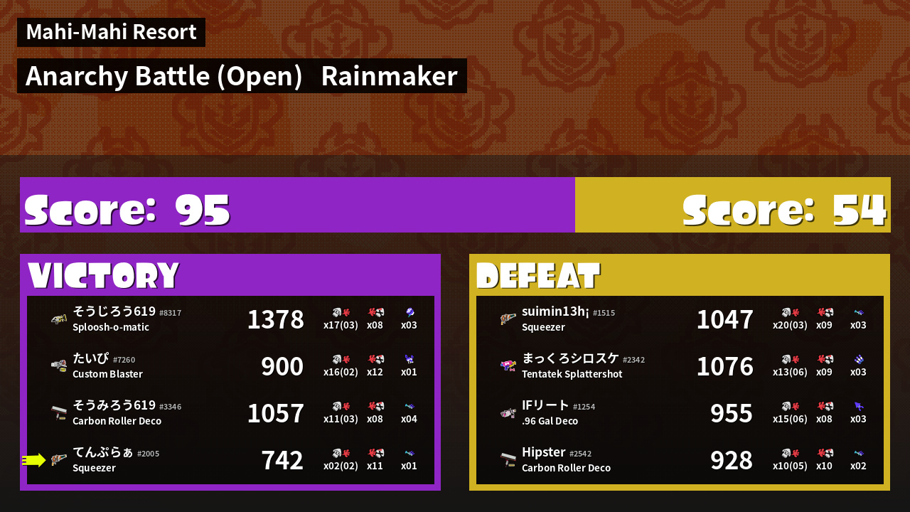 | Mode | Rainmaker - Anarchy Battle (Open) | ||