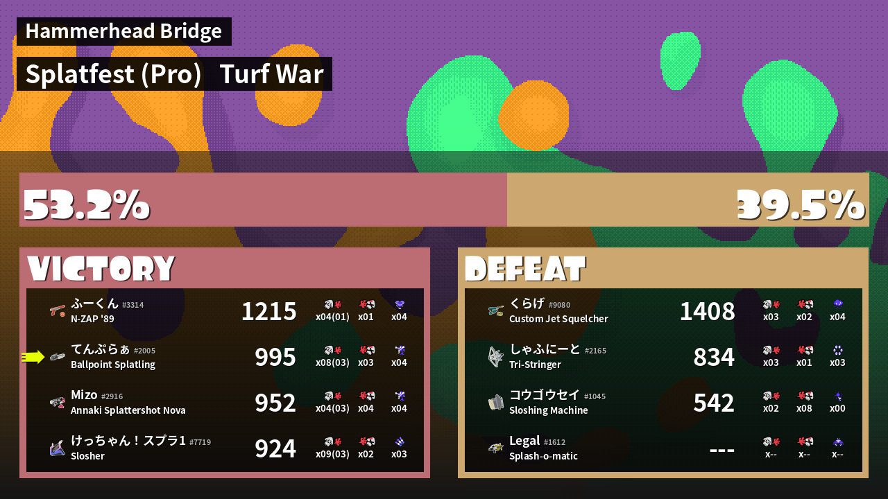 | Medals | #1 Home-Base Inker #1 Splat Assister #1 Inkjet User | ||