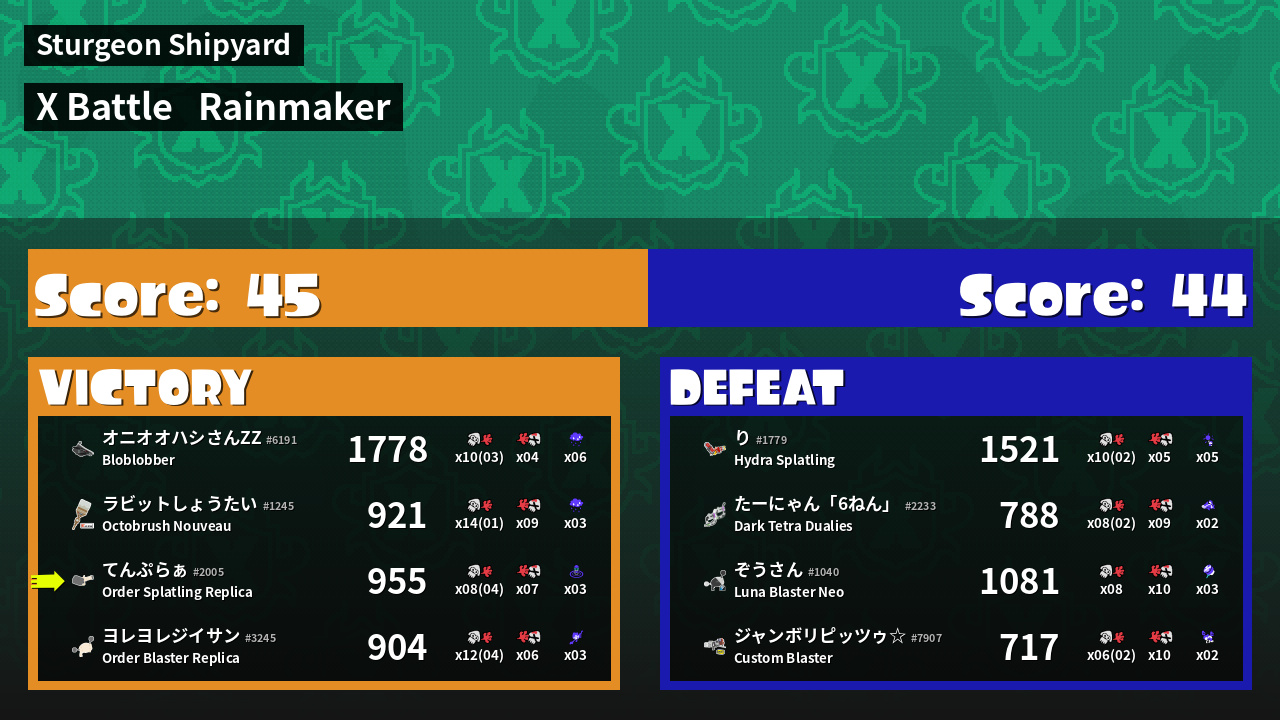 | Mode | Rainmaker - X Battle | ||