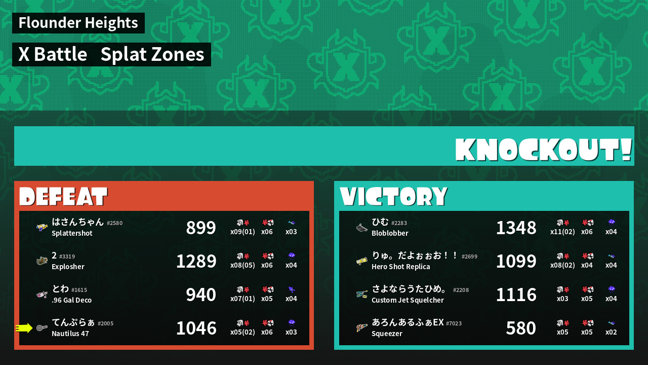 | Easy-Peasy Plankton はさんちゃん #2580 |  Splattershot                    | C- | 899 | 8 + 1 | 6 | 1.33 |  3 | |
