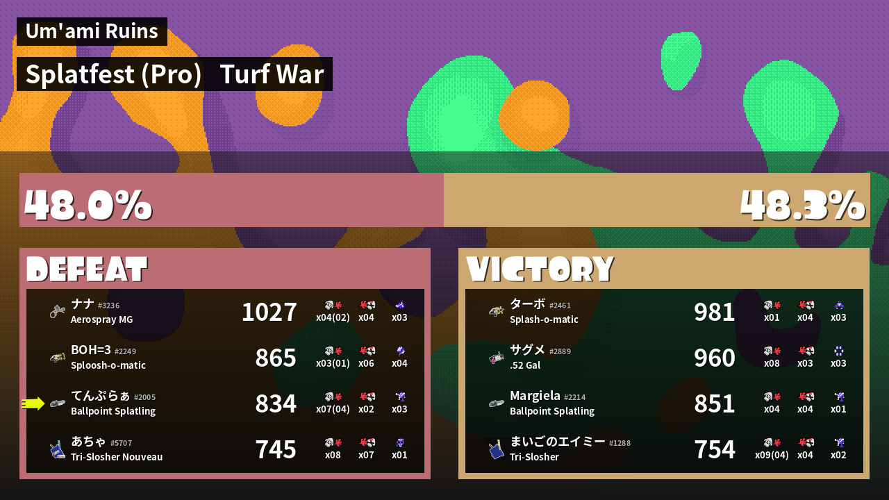| Mode | Turf War - Splatfest (Pro) | ||