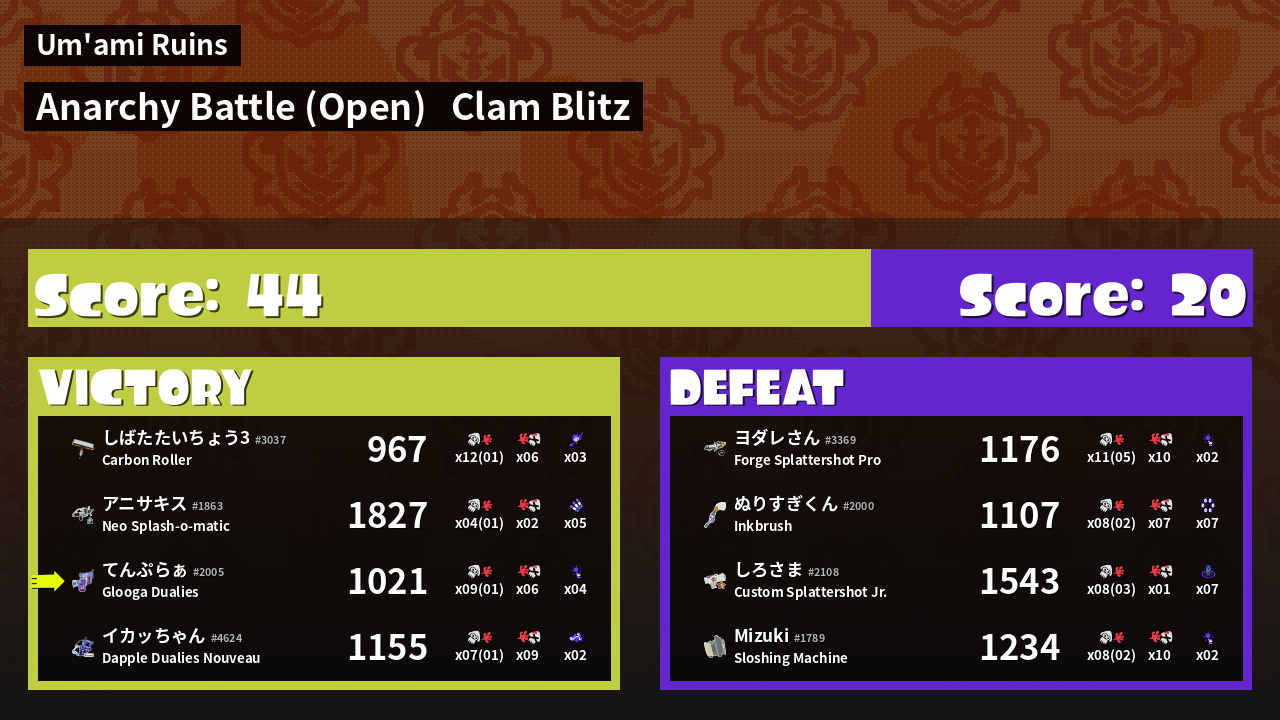 | Mode | Clam Blitz - Anarchy Battle (Open) | ||