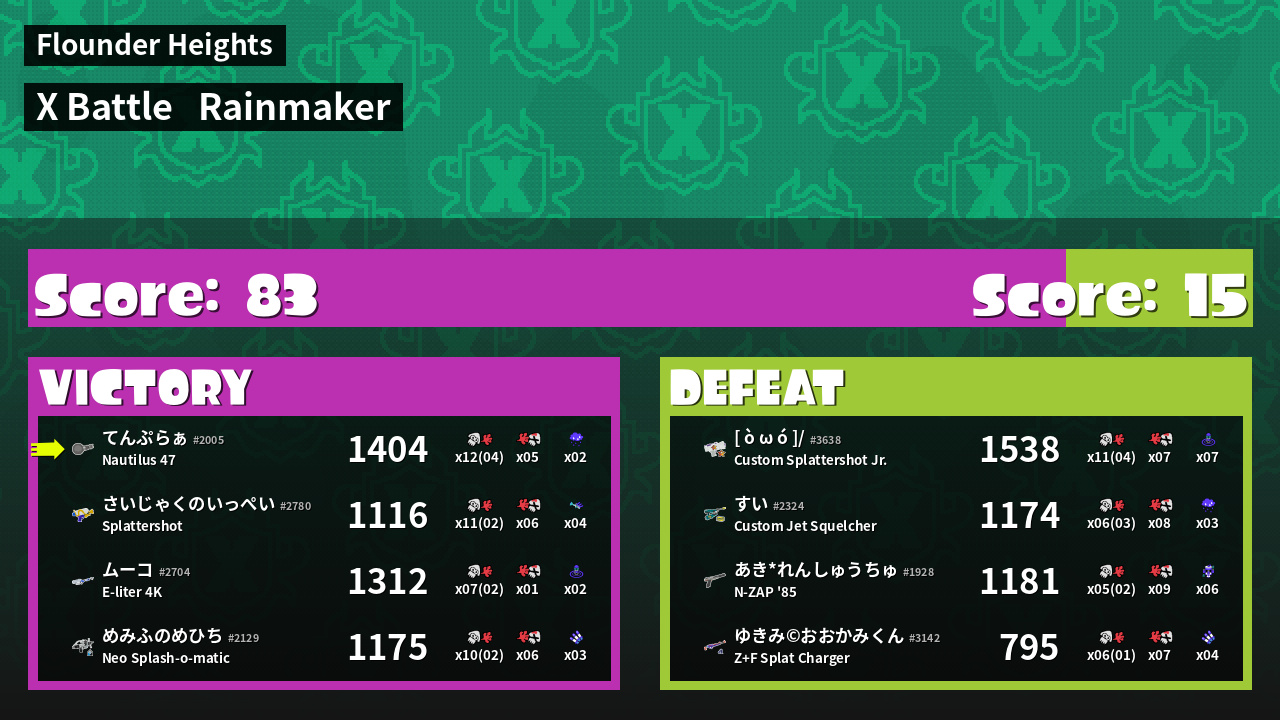 | Medals | #1 Overall Splatter #1 Score Booster Record-Score Setter | ||