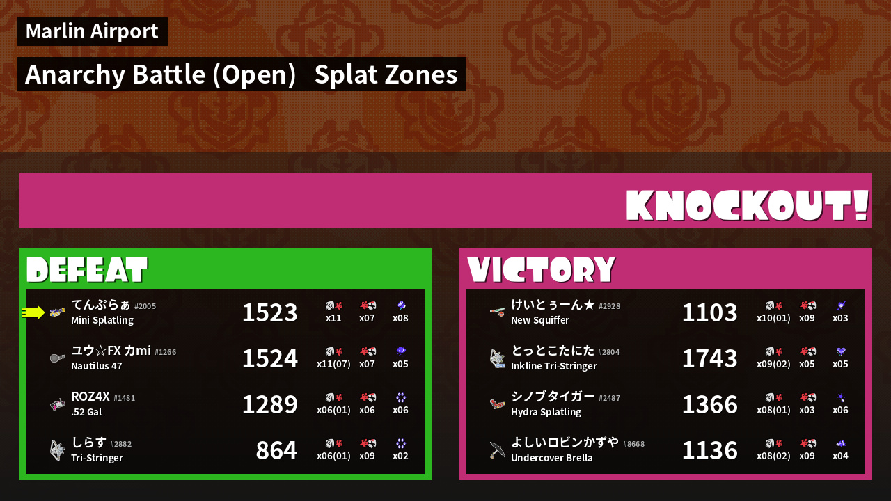 | Mode | Splat Zones - Anarchy Battle (Open) | ||