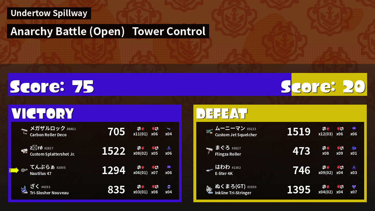 | Mode | Tower Control - Anarchy Battle (Open) | ||