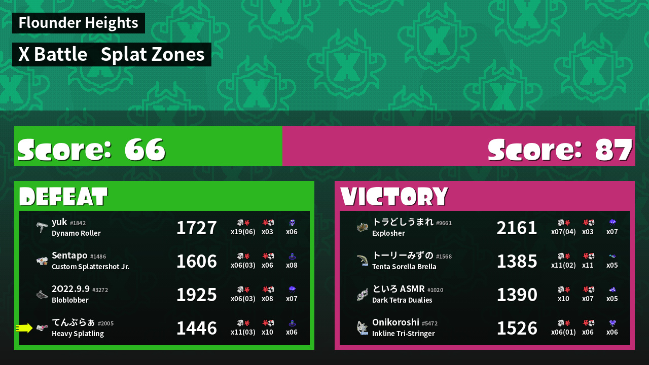 | Mode | Splat Zones - X Battle | ||