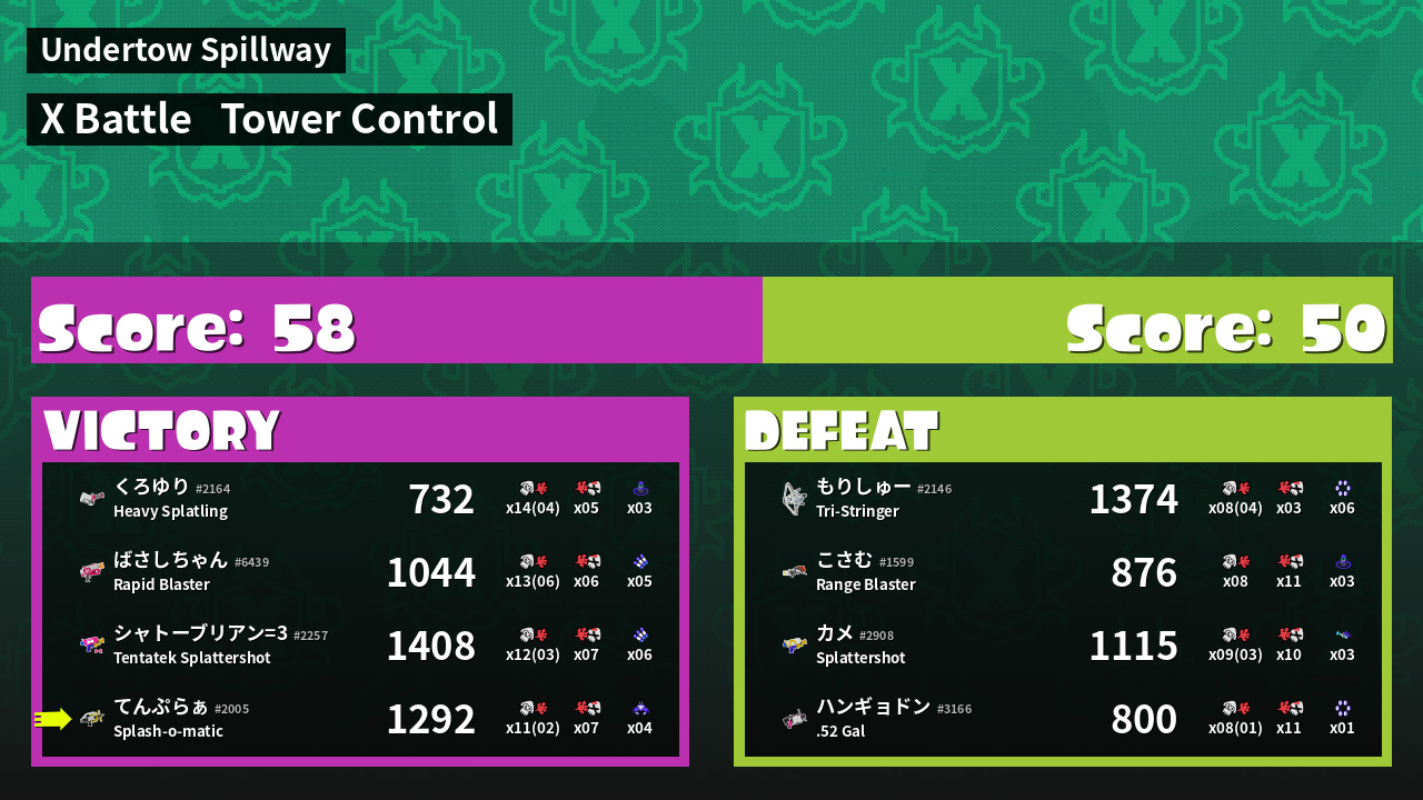 | Medals | #1 Tower Stopper First Splat! #1 Crab Tank User | ||