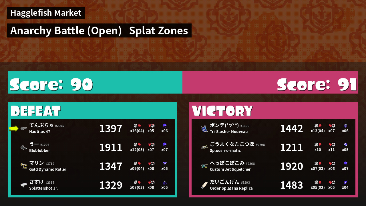| Mode |  Splat Zones -  Anarchy Battle (Open) | ||