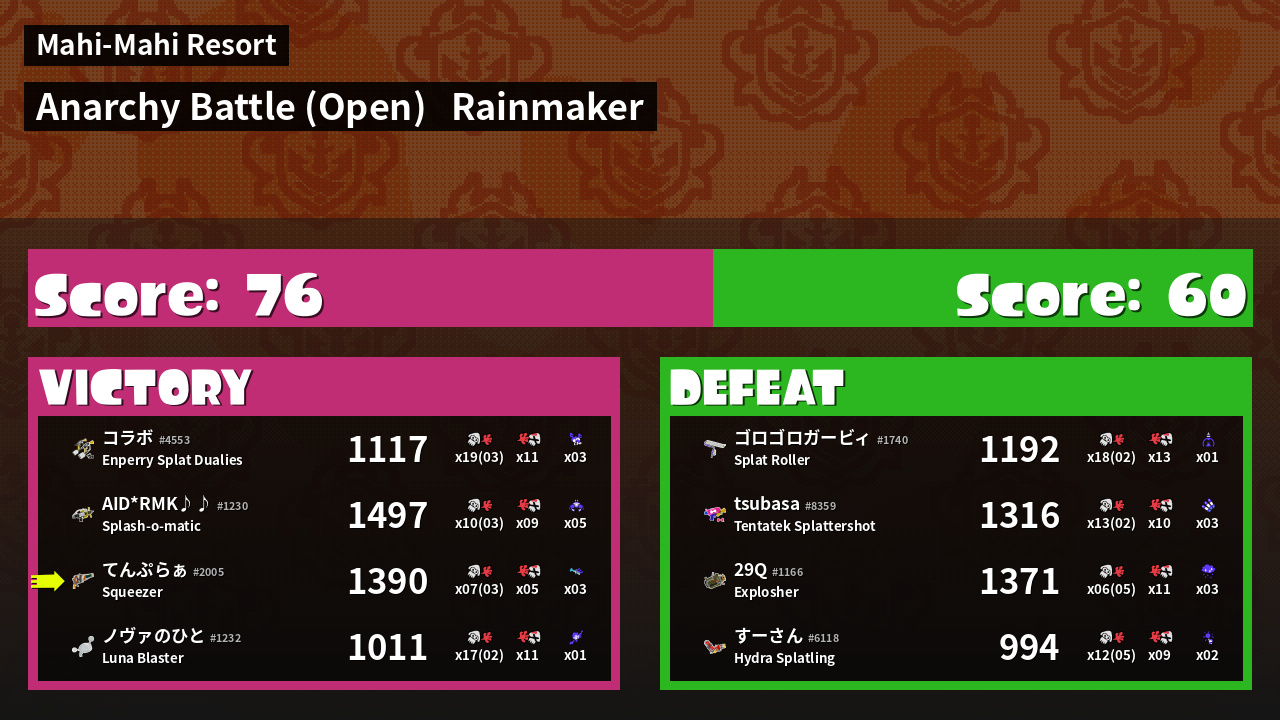 | Mode | Rainmaker - Anarchy Battle (Open) | ||