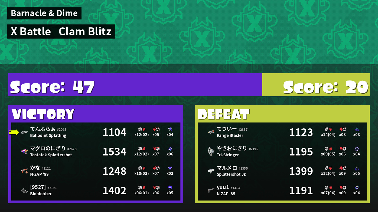| Mode | Clam Blitz - X Battle | ||