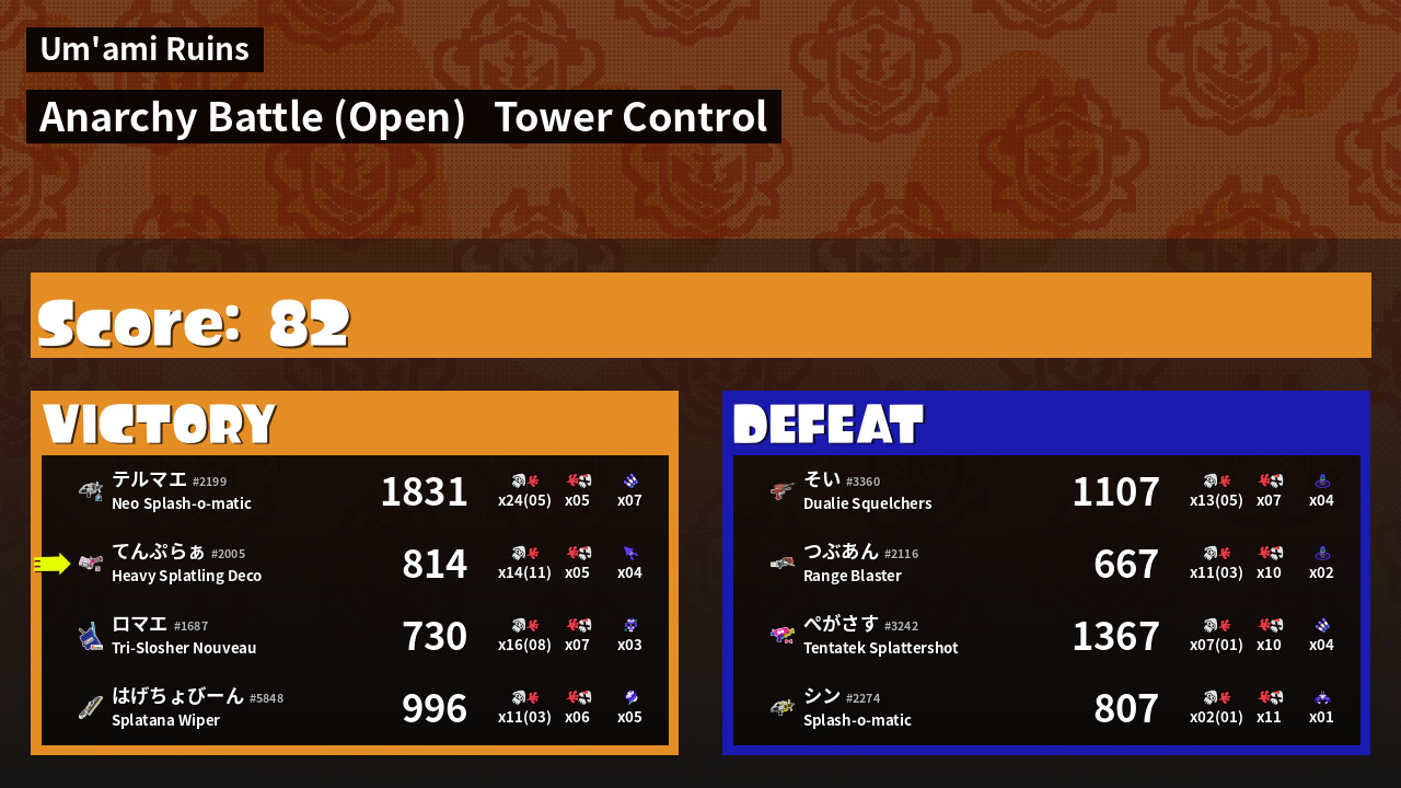 | Mode | Tower Control - Anarchy Battle (Open) | ||