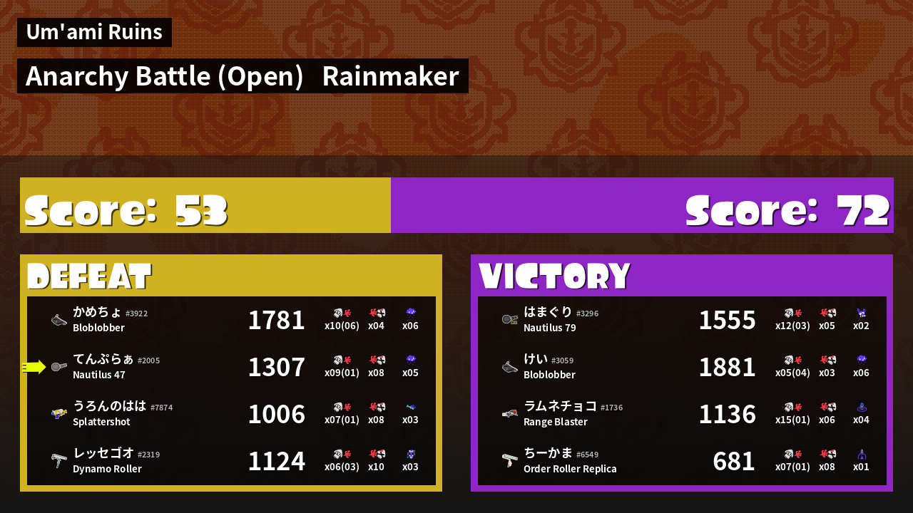 | Mode | Rainmaker - Anarchy Battle (Open) | ||