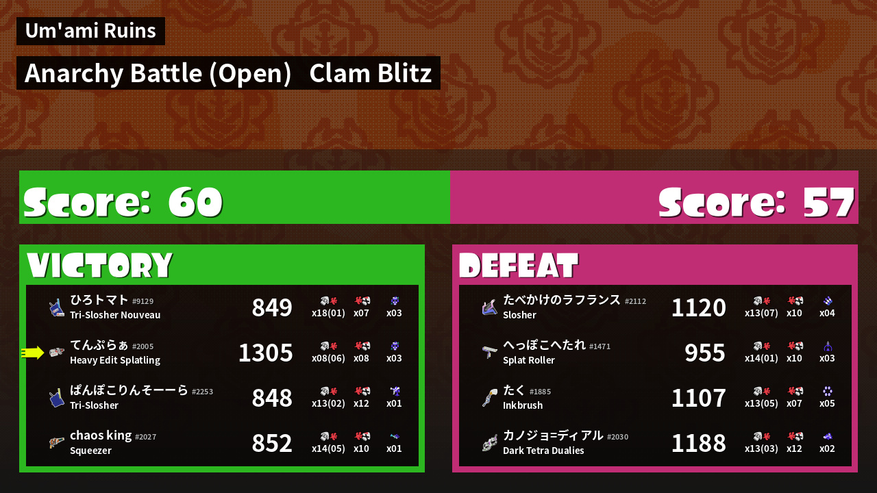 | Mode | Clam Blitz - Anarchy Battle (Open) | ||