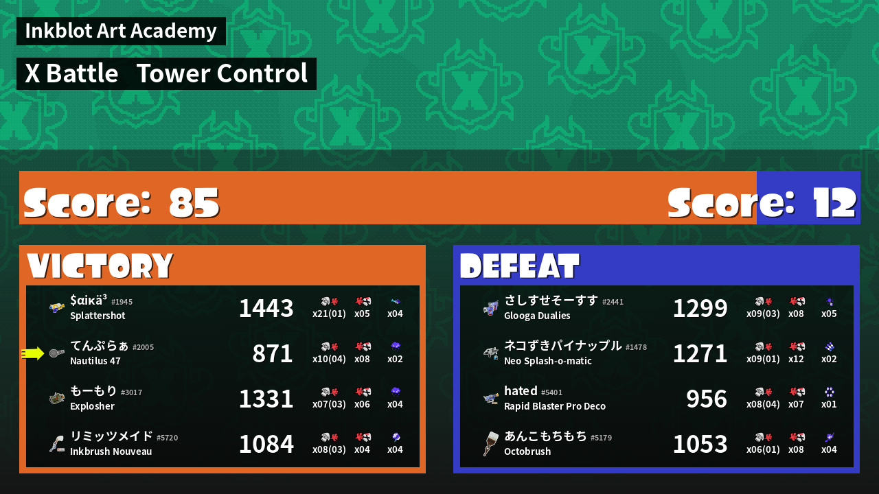 | Medals | #1 Score Booster #1 Splat Assister #1 Checkpoint Breaker | ||