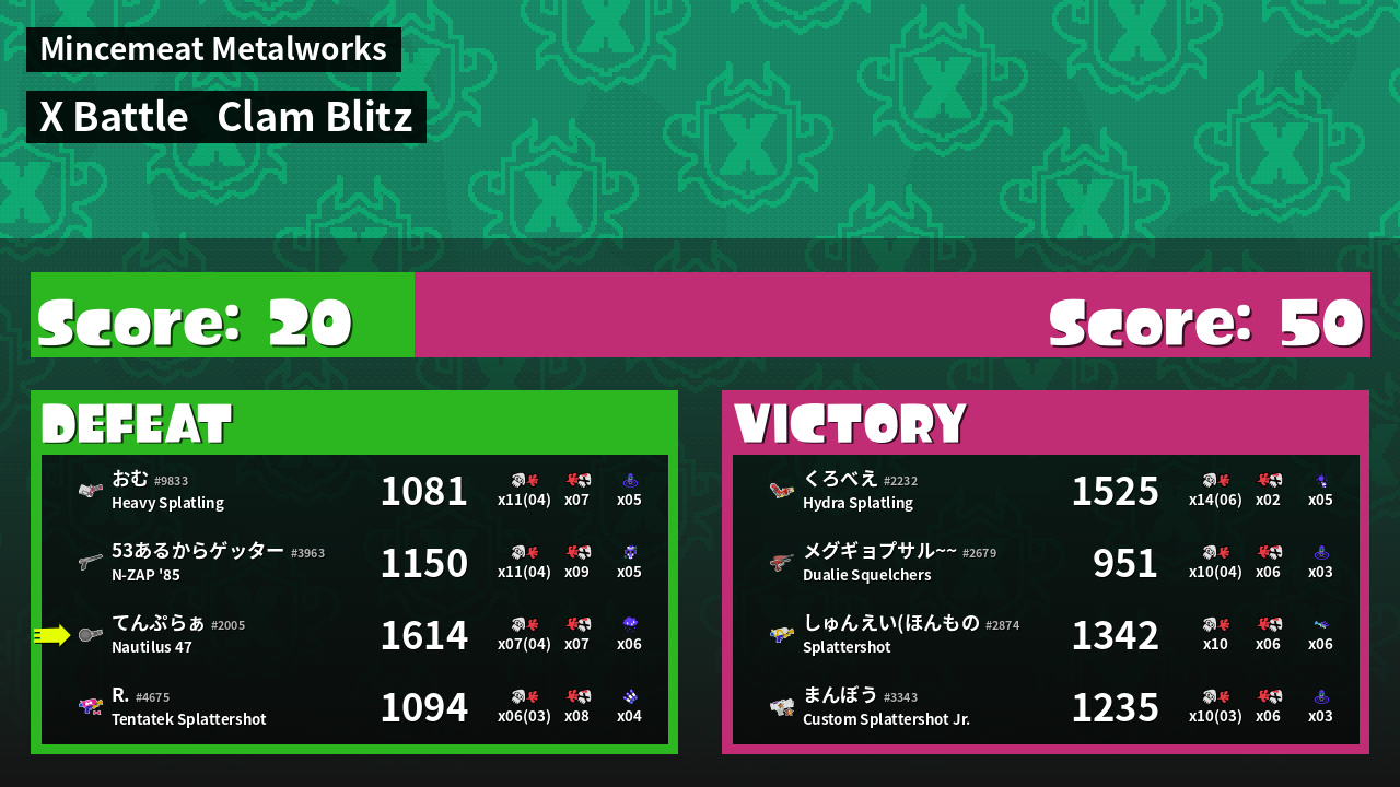 | Weapon | Nautilus 47 ( Point Sensor / Ink Storm) | ||