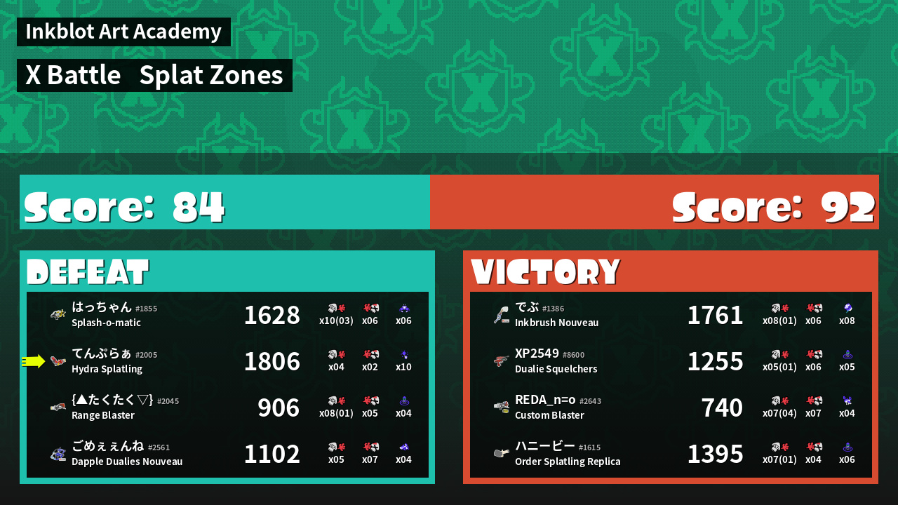 | Medals | #1 Splat Zone Inker #1 Turf Inker #1 Super Jump Spot | ||