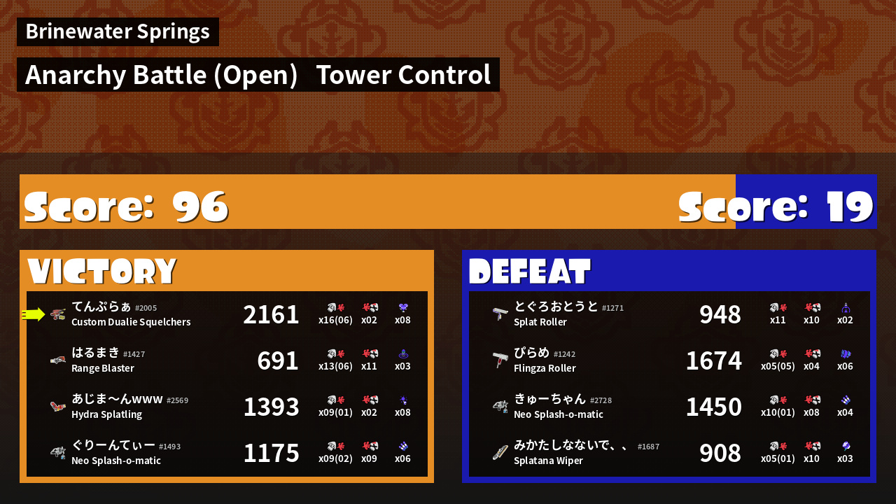 | Mode | Tower Control - Anarchy Battle (Open) | ||