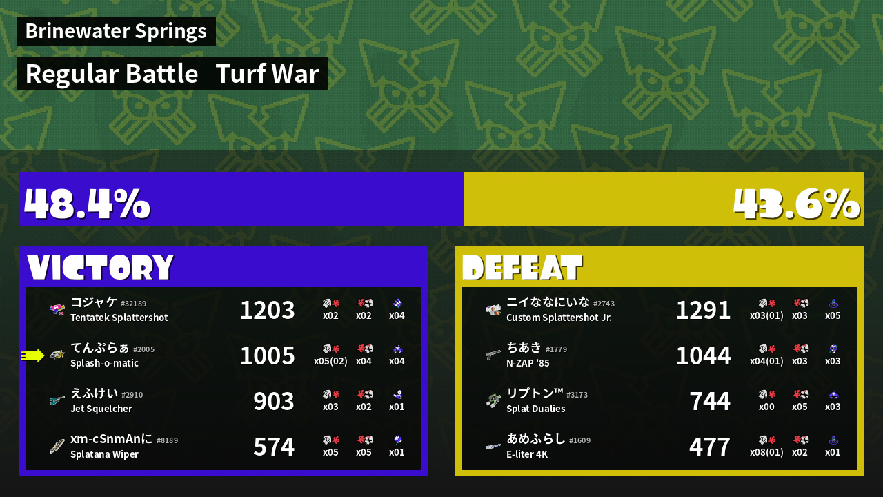 | Mode | Turf War - Regular Battle | ||